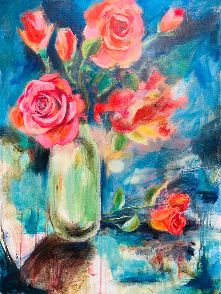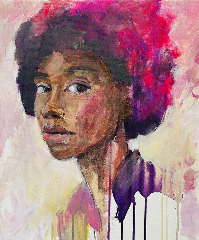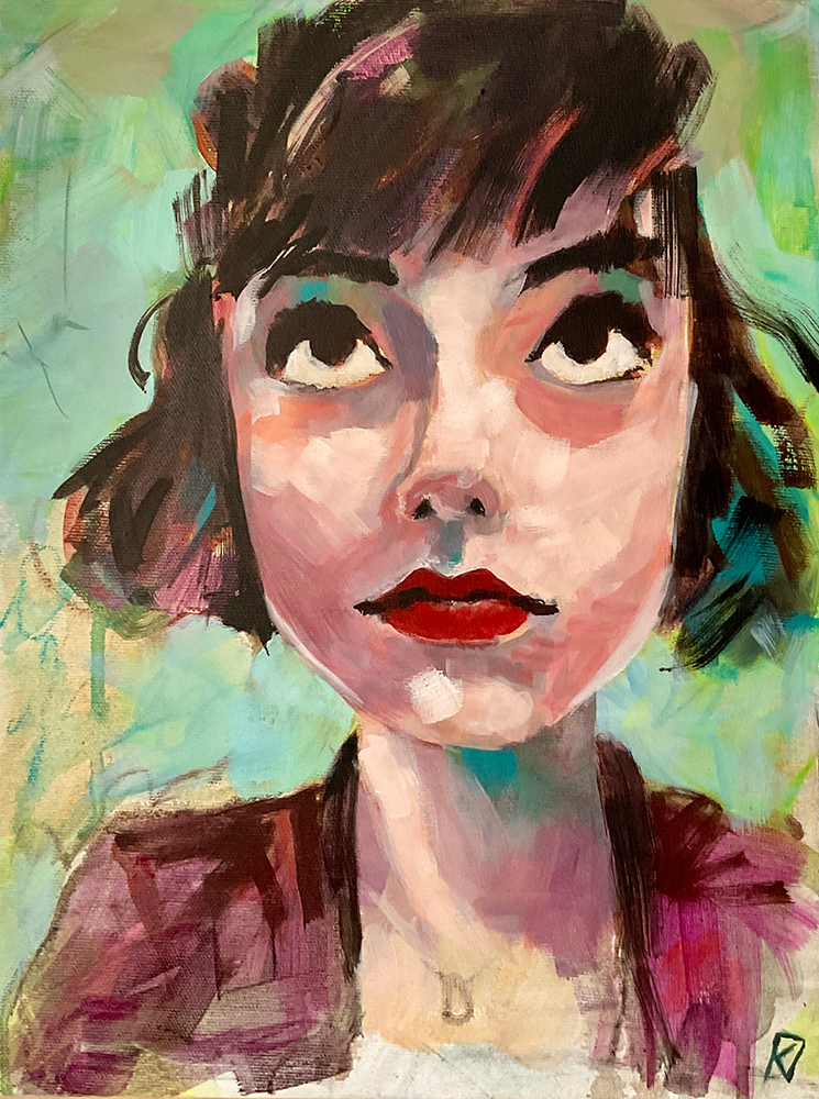 Seit 2025 hat dieser Auftrag ein Zuhause im Atelier Bildwechsel gefunden. Mit kräftigen Farben portraitiert Ka Schmitz Menschen  und Pflanzen und lotet dabei die Übergänge zwischen Realismus und Abstraktion aus. Der Moment, in dem ein Gesicht mit dem Hintergrund verschwimmt, wo ein Blütenblatt reine Farbe wird, fasziniert sie. Ihre jahrelange Arbeit als Illustratorin und Comiczeichnerin führt dabei immer wieder zu spannenden Allianzen von ausdrucksstarken Gesichtern und Emotionen mit kräftigen, rauen Pinselstrichen.